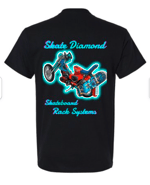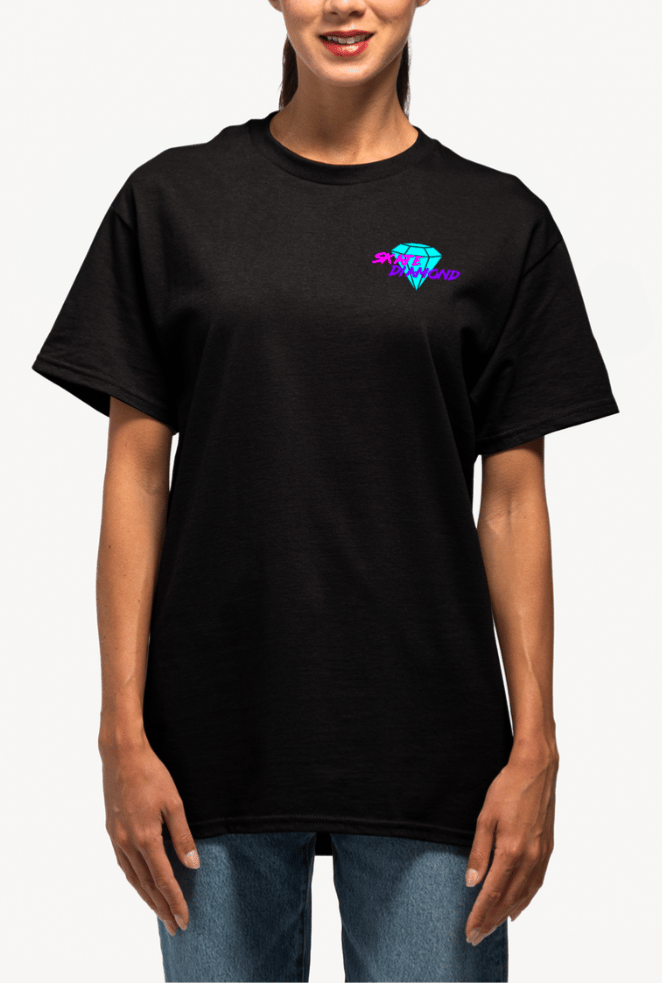 Support your local Skate Chop. Front side has a lil Skate Diamond logo on the left chest. Rear features the chopper "Smokin' Hippy", fitted with a Storm Grey Skate Diamond skateboard rack.